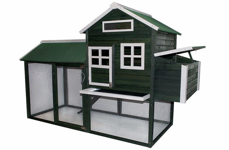 Komplett hønsehus i slitesterkt og værbestandig treverk av furu
